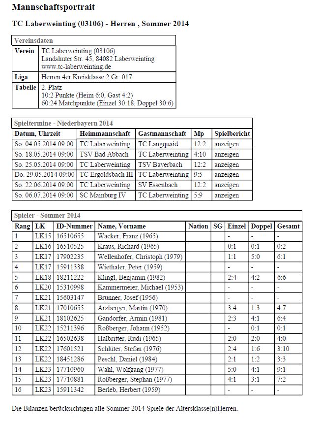 Herren I 4er Kreisklasse 2 - Saison 2014