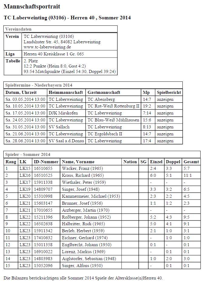 Herren 40 Kreisklasse 1 - Saison 2014